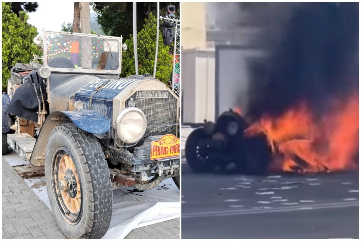 Самый старый автомобиль-участник ралли Пекин-Париж загорелся в Баку - ФОТО