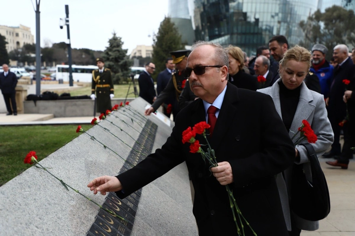 Посол Бирол Акгюн возложил венок к памятникам, посетил могилы шехидов, возложил к ним гвоздики и оставил запись в Книге памяти.