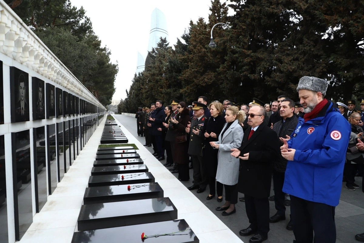 Сообщается, что сотрудники посольства, военного атташе, представители различных ведомств, НПО и граждане посетили Мемориал турецким воинам и Аллею шехидов в Баку.
