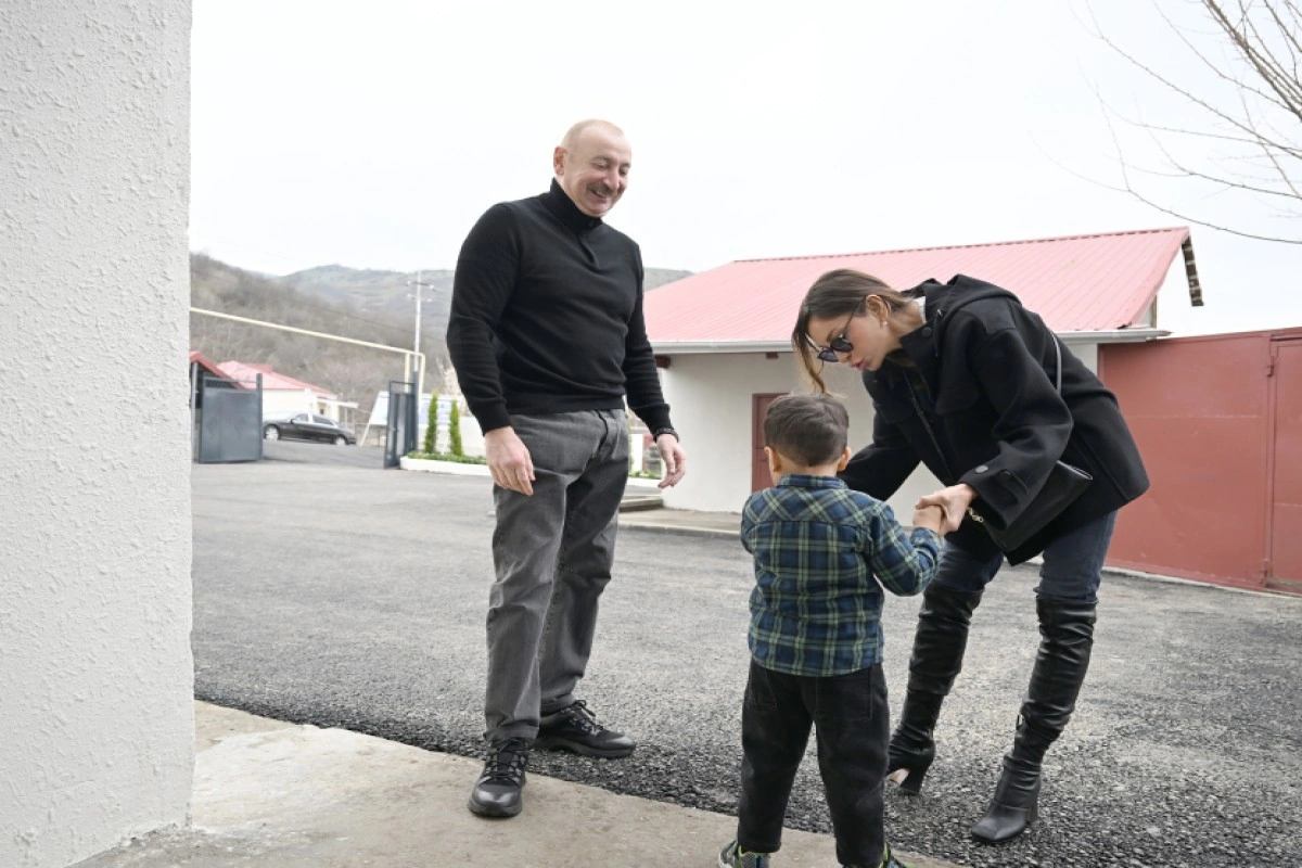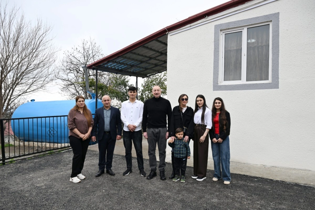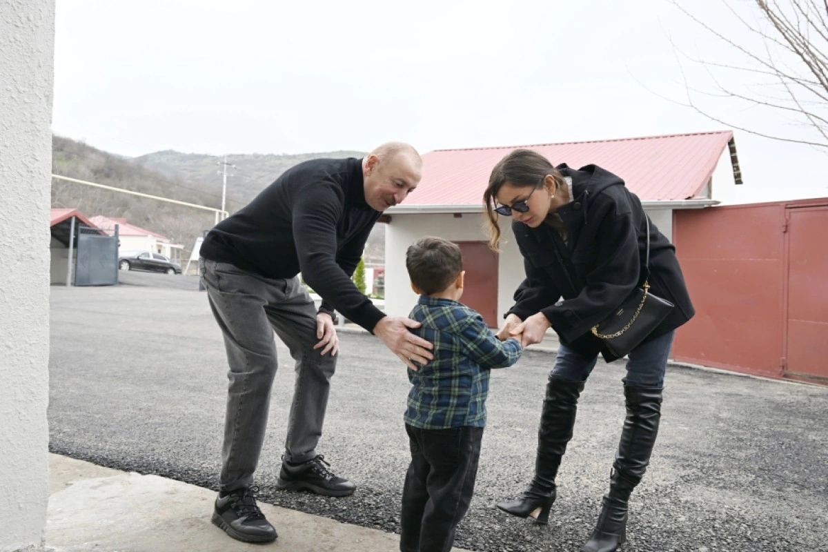 Как сообщает АПА, затем глава государства и первая леди побывали в доме переселившегося в село Бейбалы Гасымова.