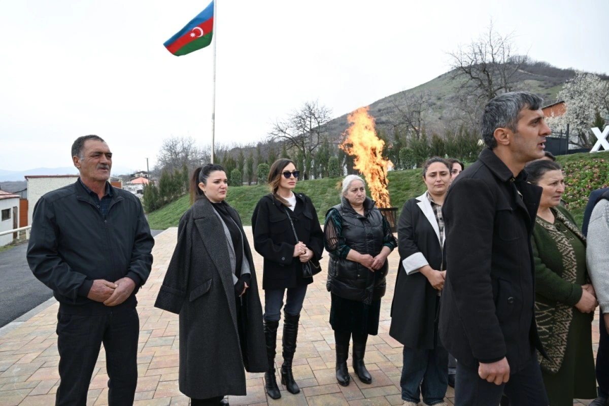 Президент вместе с жителями зажёг новрузский костёр в селе Ханоба.