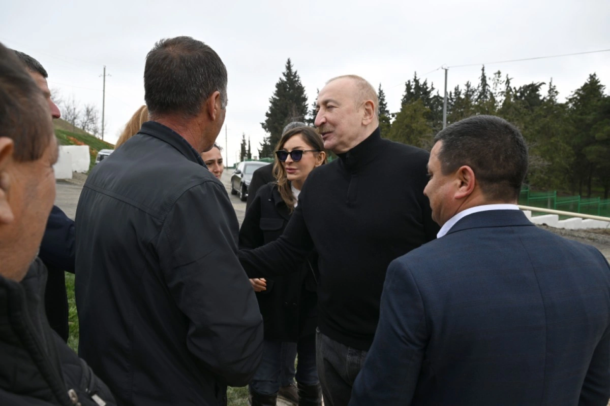 После этого Ильхам Алиев и Мехрибан Алиева встретились с жителями, вернувшимися в село Ханоба.