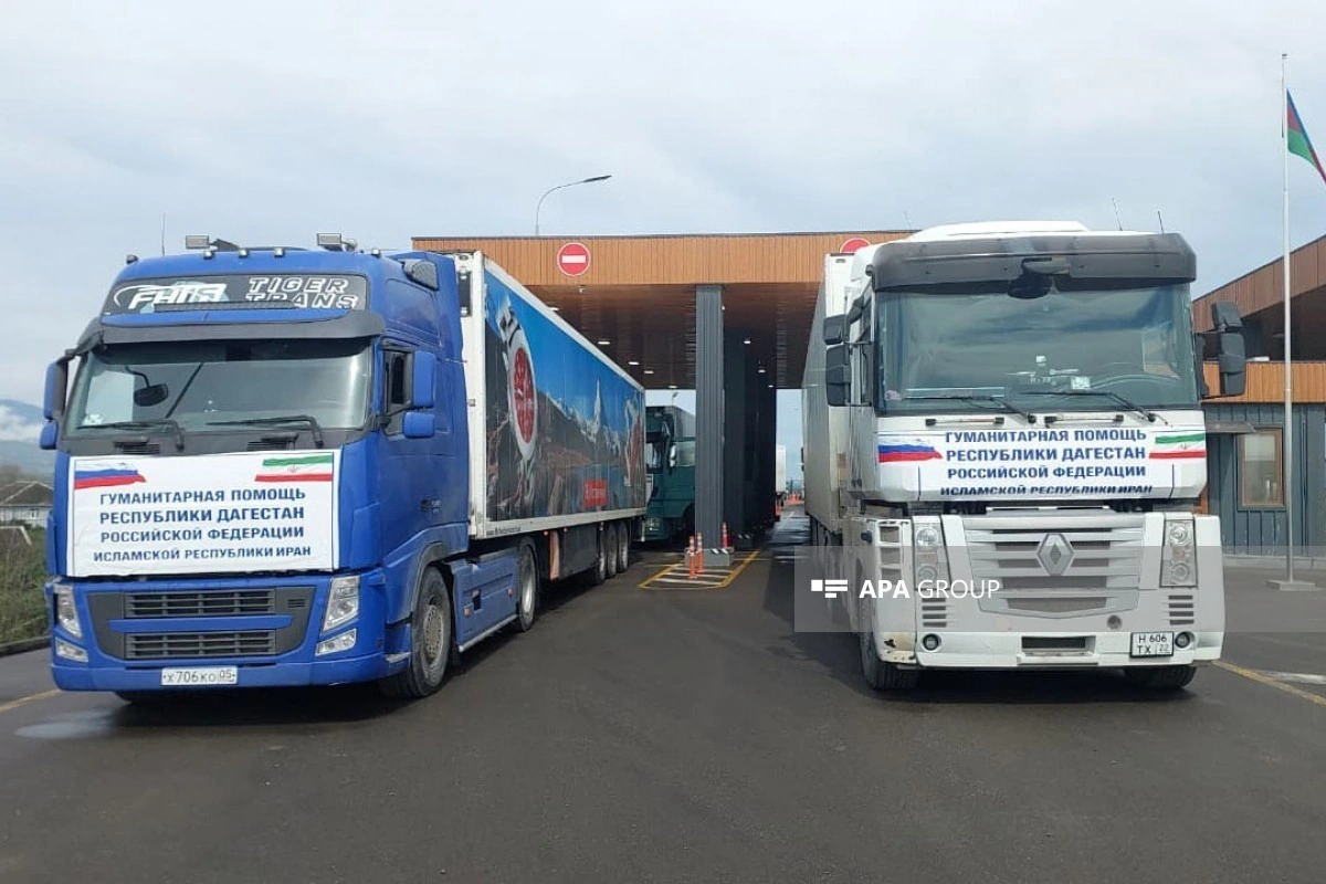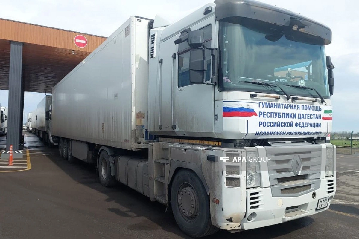 Третий конвой с гуманитарной помощью, отправленный из России в Иран, прибыл на пункт пропуска «Юг-Астара» на государственной границе между Азербайджаном и Ираном.