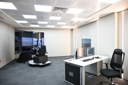 Здесь установлен симулятор вышки управления (TWR) с панорамным обзором Международного аэропорта Гейдар Алиев на 360 градусов, а также комплекс радарных симуляторов для управления воздушным пространством. Эти системы позволяют готовить диспетчеров в реальных операционных условиях.