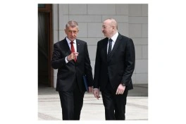 Президент Азербайджанской Республики Ильхам Алиев и Премьер-министр Чешской Республики Андрей Бабиш выступают с заявлениями для прессы.