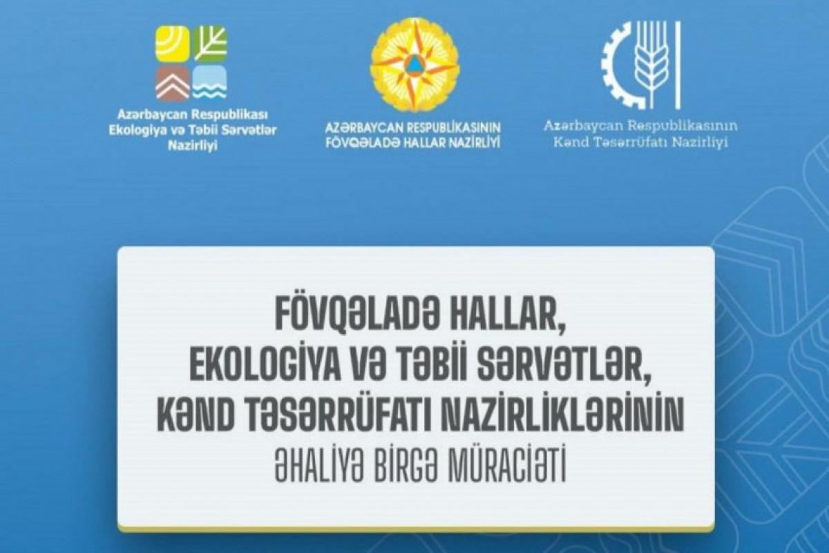 Как передает АПА, об этом говорится в совместном обращении к населению министерств по чрезвычайным ситуациям, экологии и природных ресурсов, сельского хозяйства.