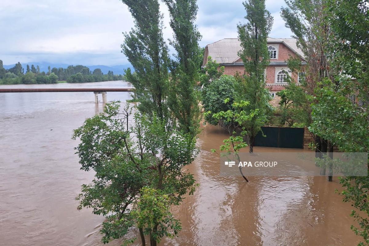 Проливные дожди привели к разливу реки Лянкяранчай, протекающей через село Сутемурдов.