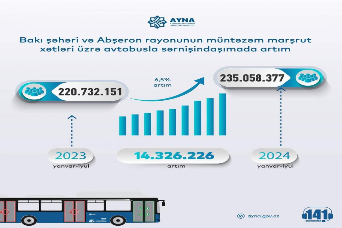 Отметим, что за январь-июль 2023 года автобусами по регулярным маршрутам города Баку и Абшеронского района было перевезено 220,732 миллиона пассажиров.