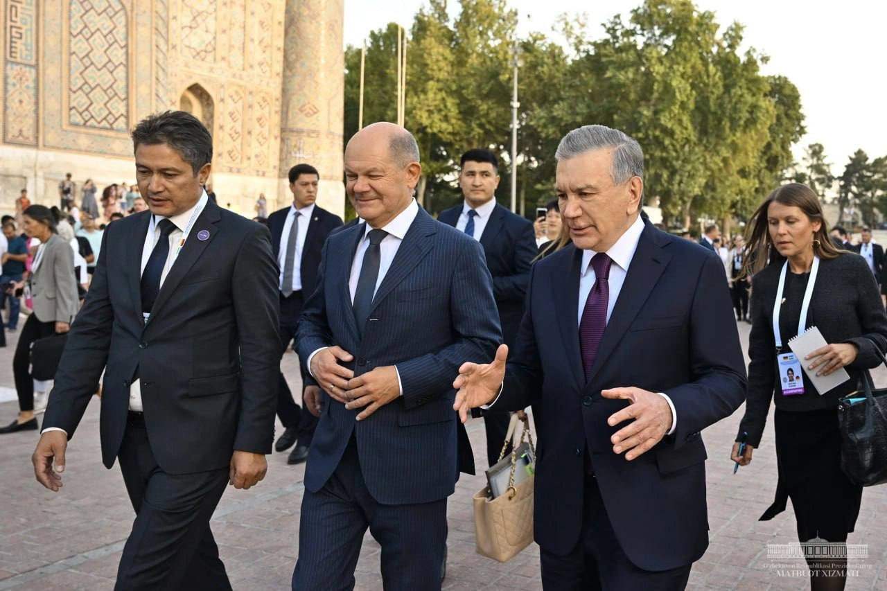 Шавкат Мирзиёев и Олаф Шольц сделали совместное фото на фоне ансамбля Регистан.
