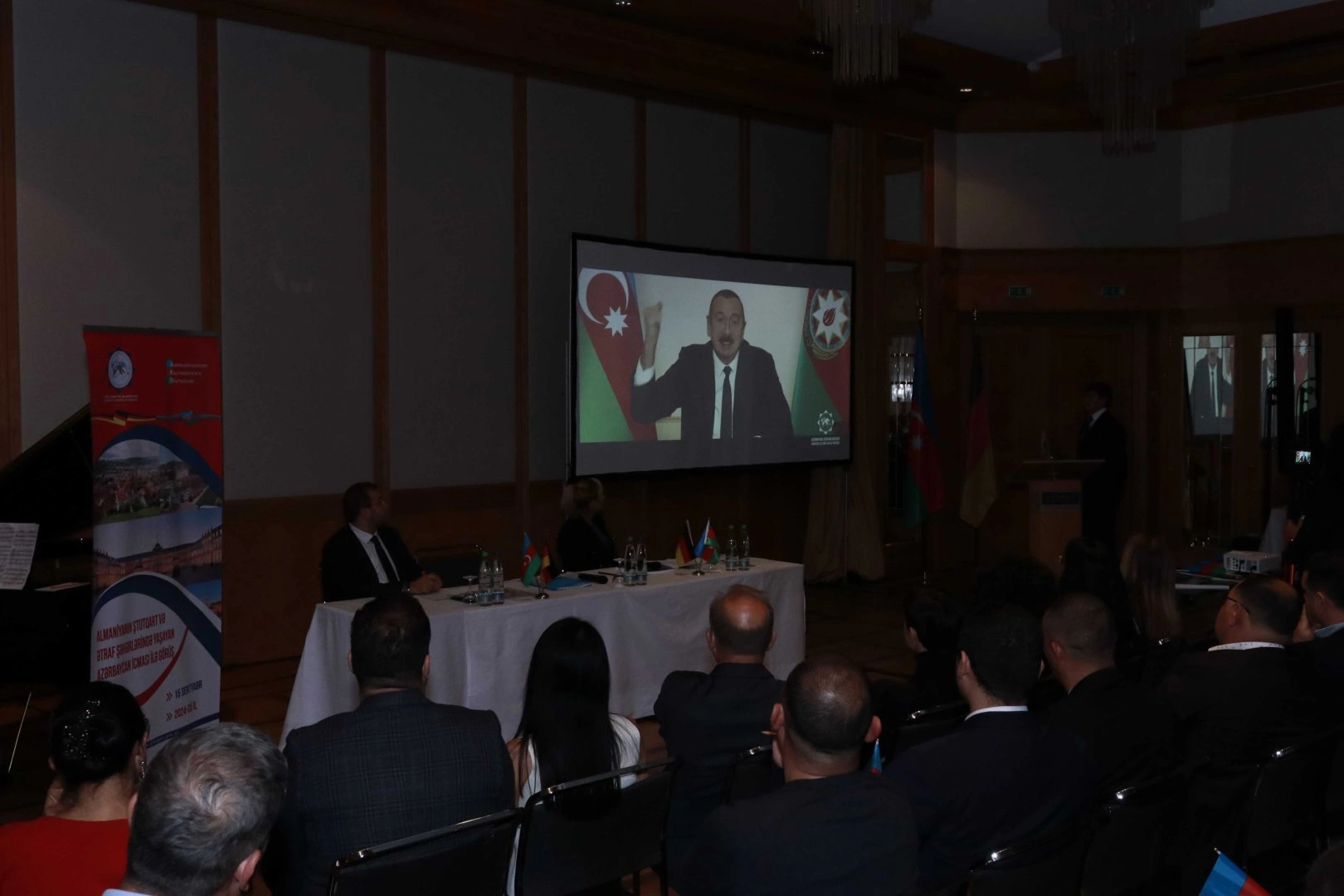 Затем были продемонстрированы видеоролики, отражающие деятельность азербайджанской диаспоры, а также Победу Азербайджана в Отечественной войне.