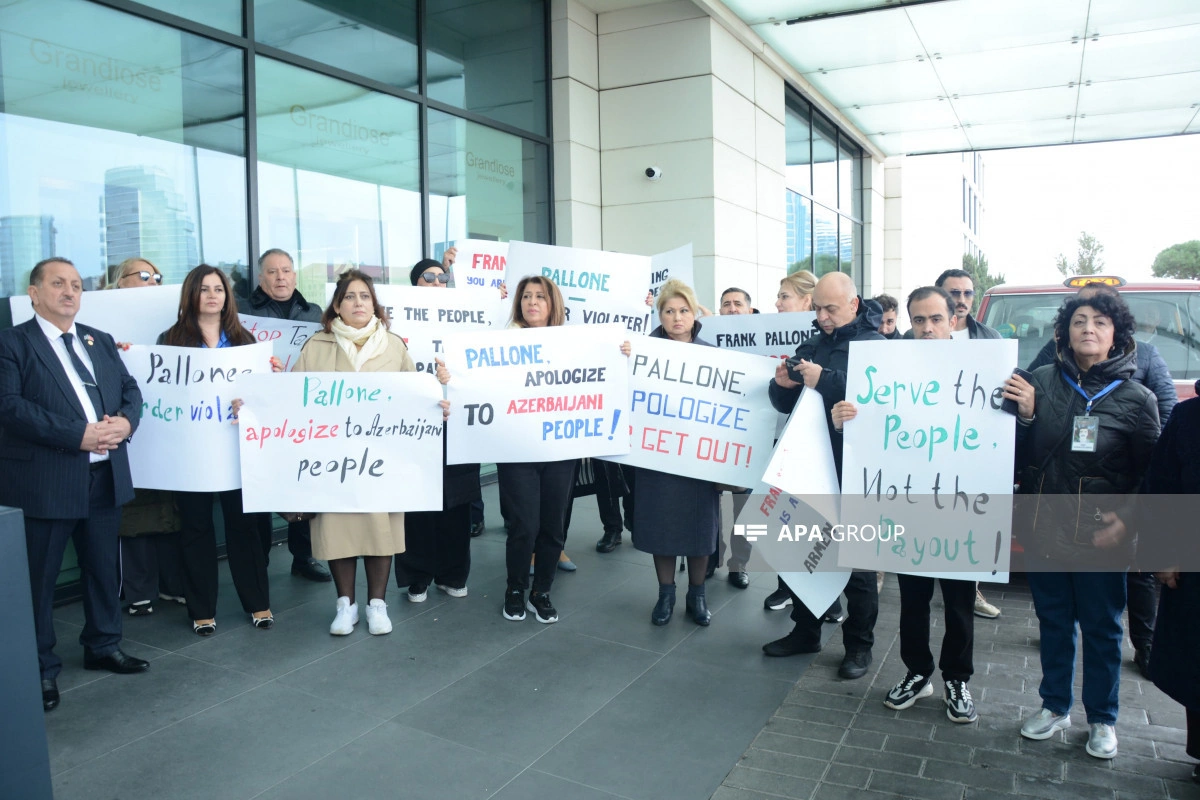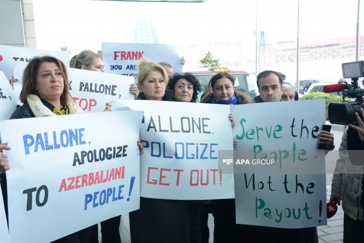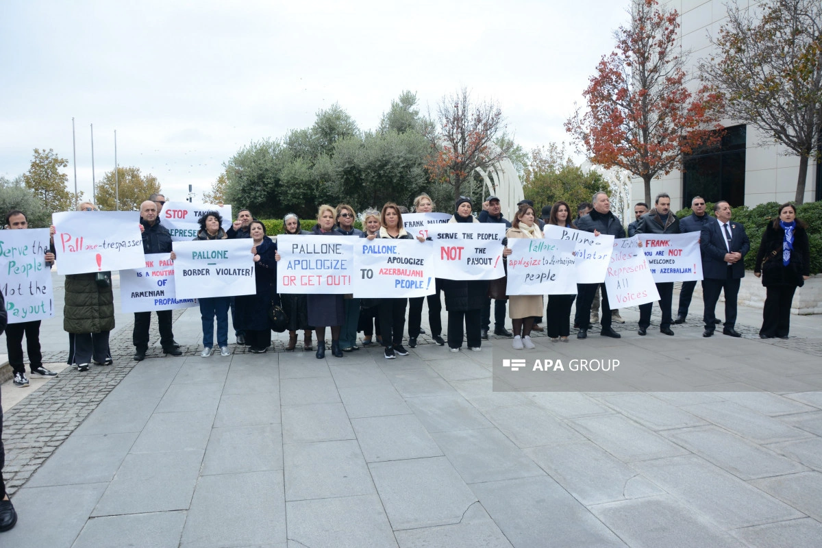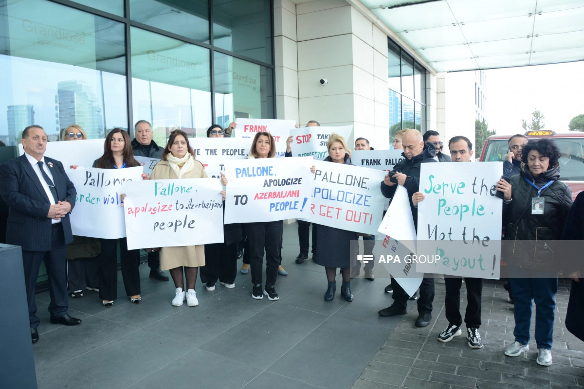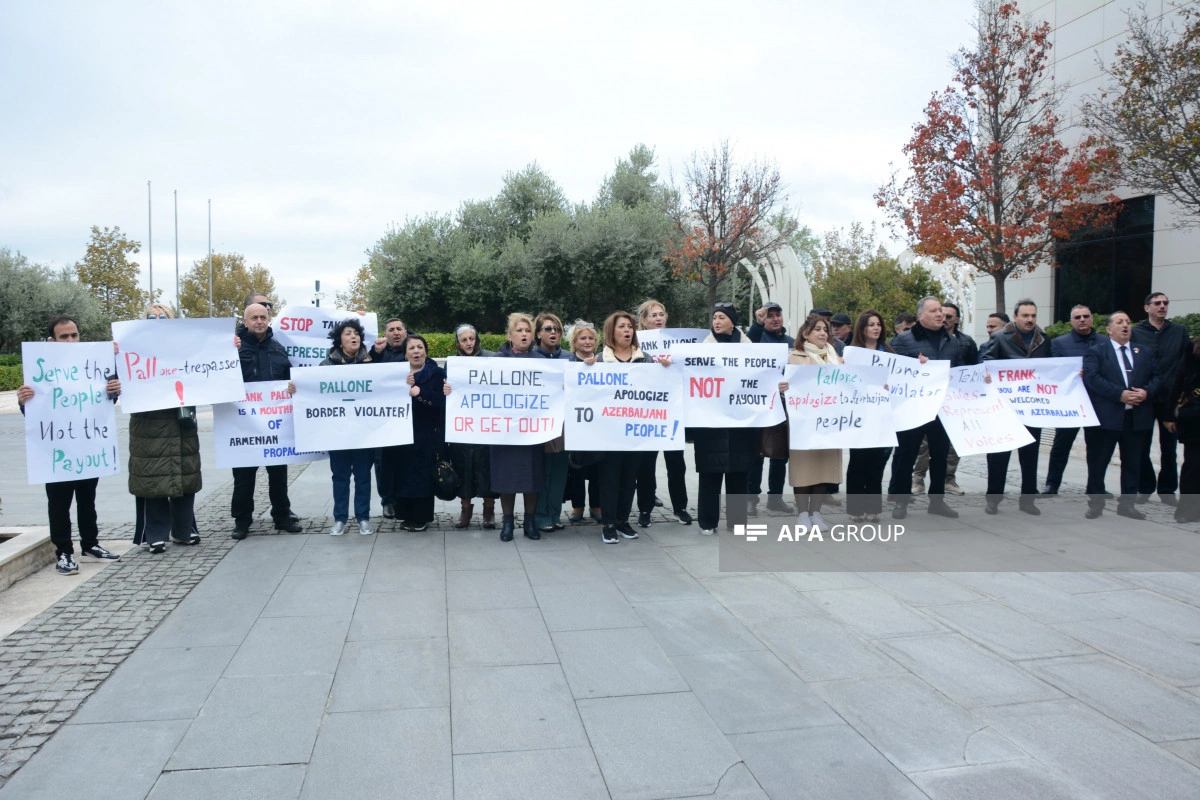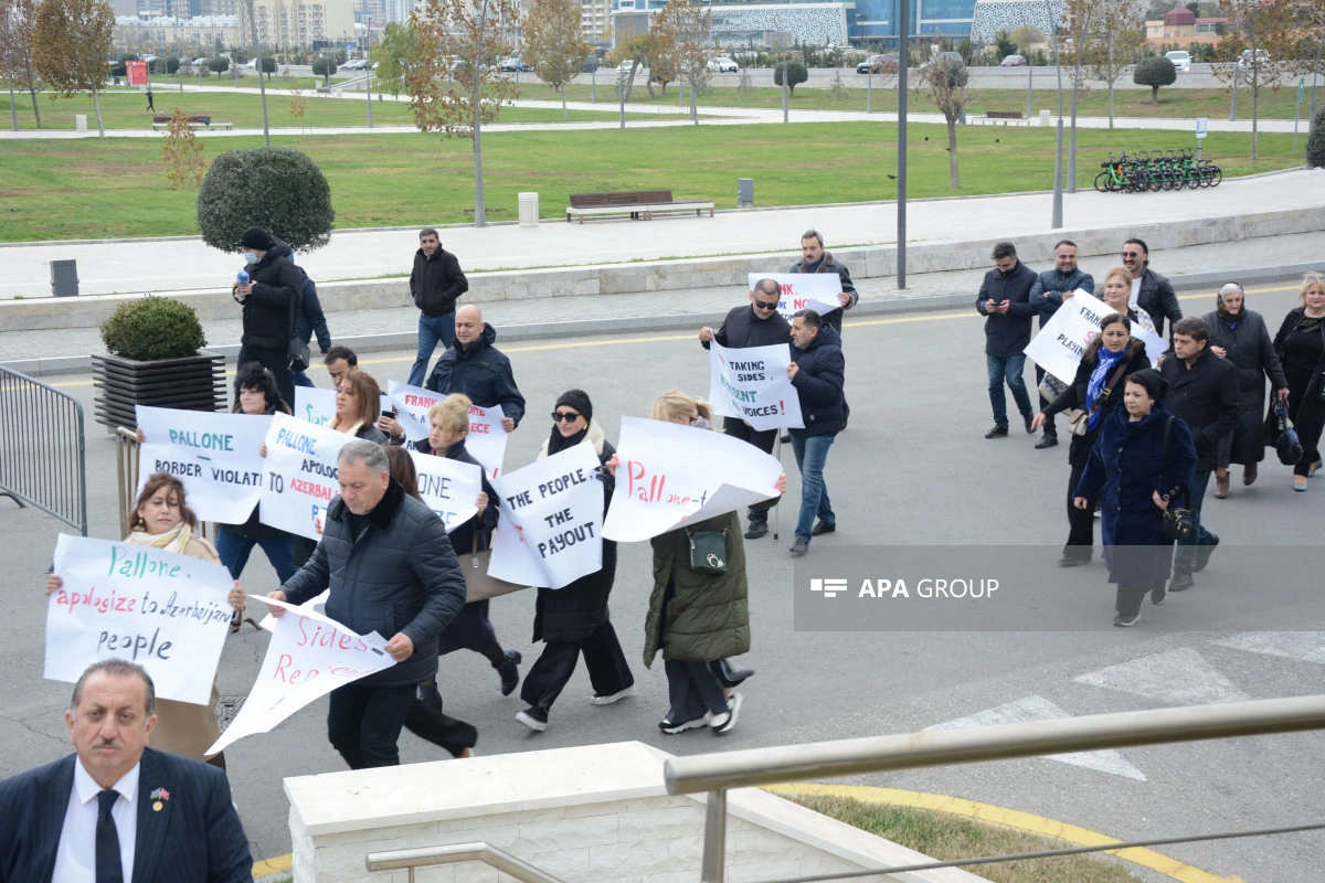 Как сообщает АПА, участники акции потребовали, чтобы Ф.Паллоне, постоянно демонстрирующий предвзятую позицию по отношению к азербайджанскому народу, немедленно извинился, скорректировал свое мнение, а также чтобы он немедленно покинул Баку.