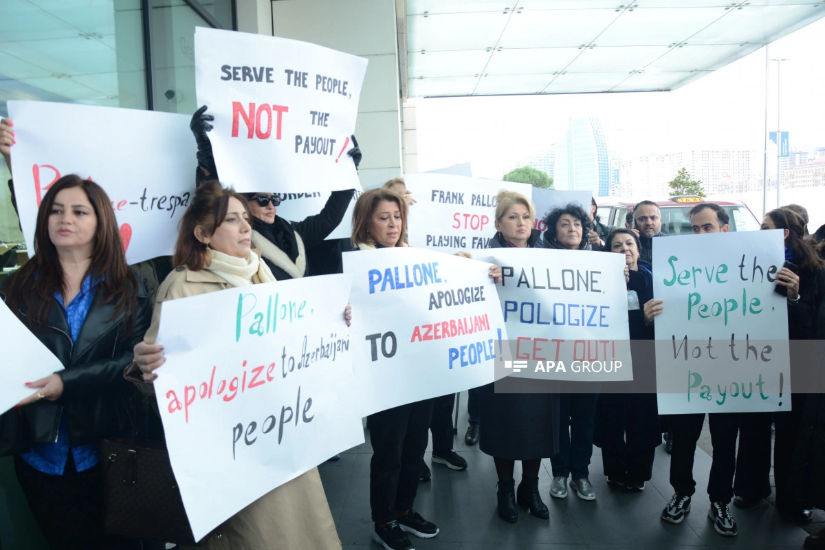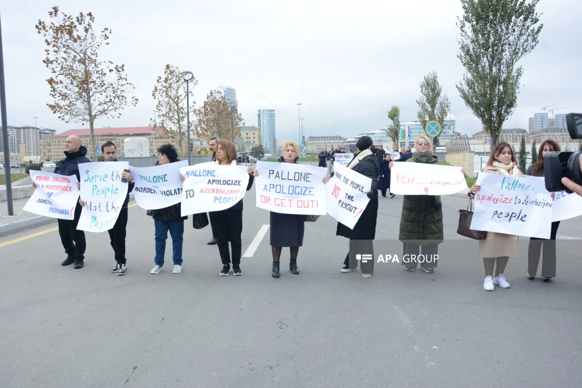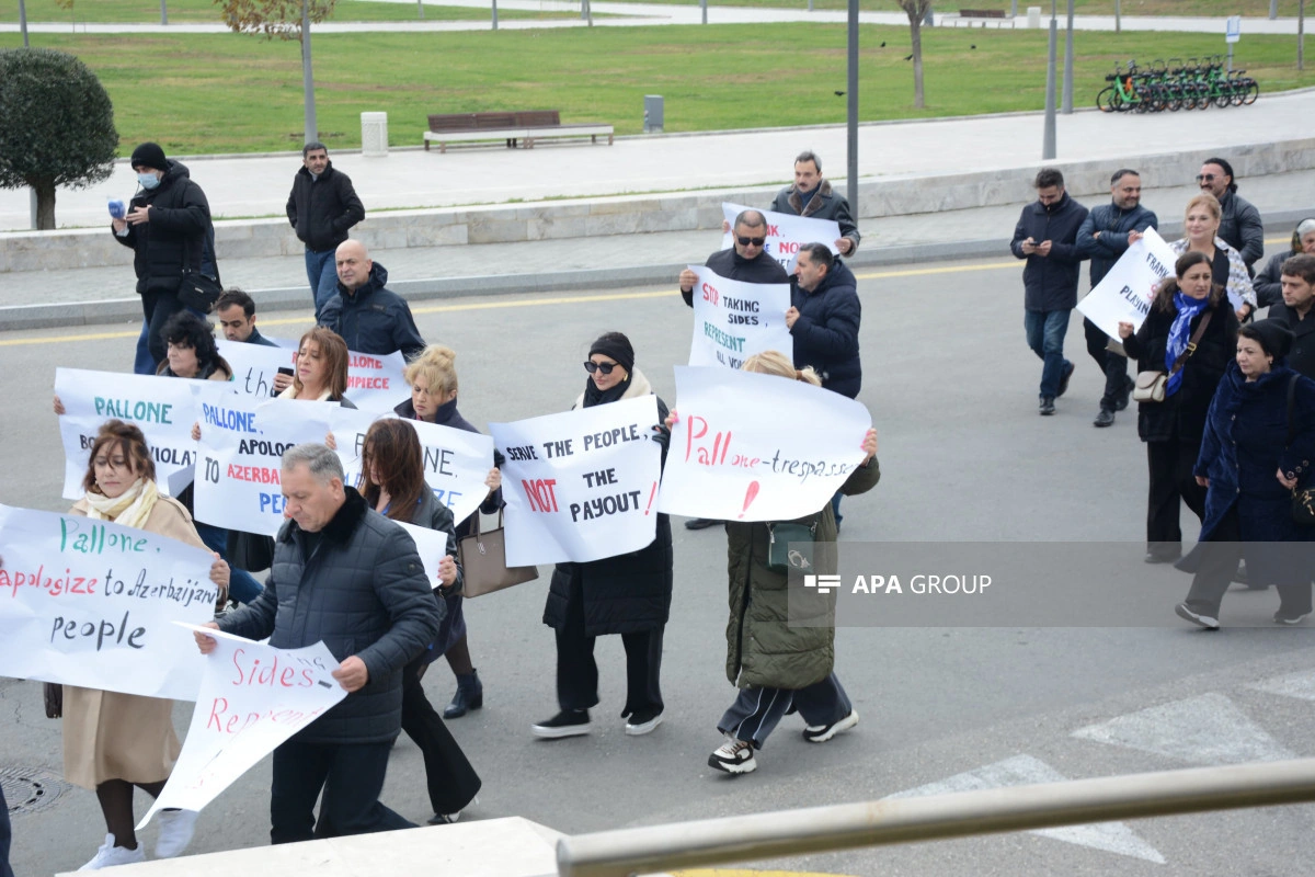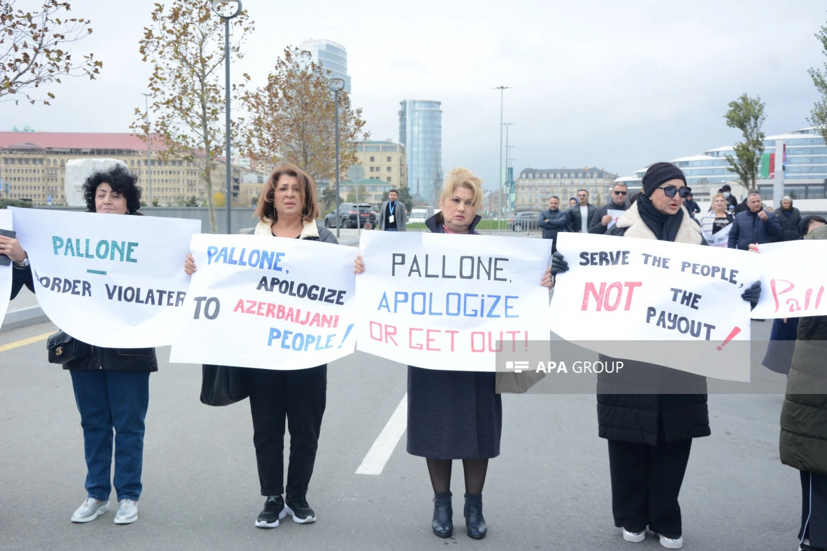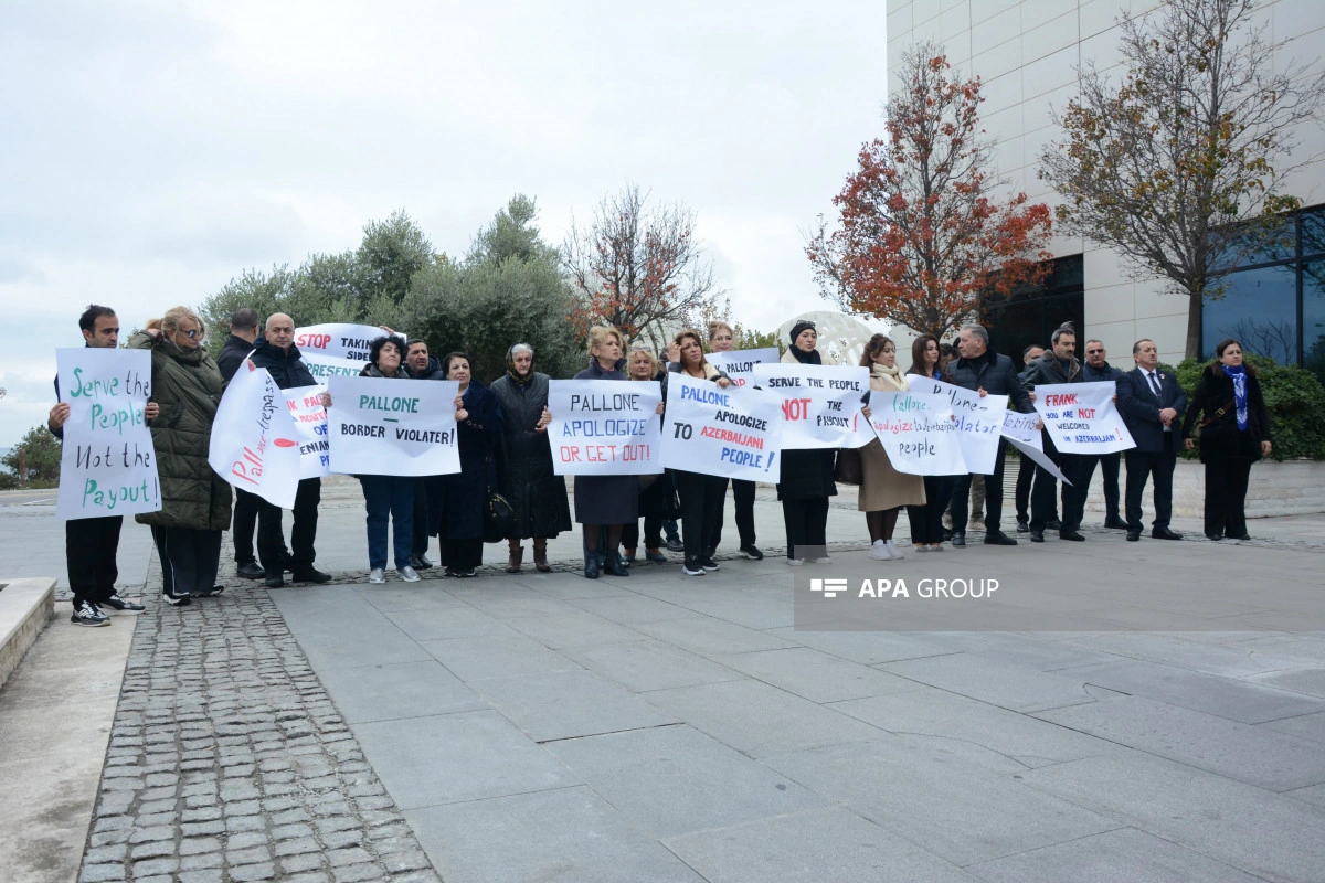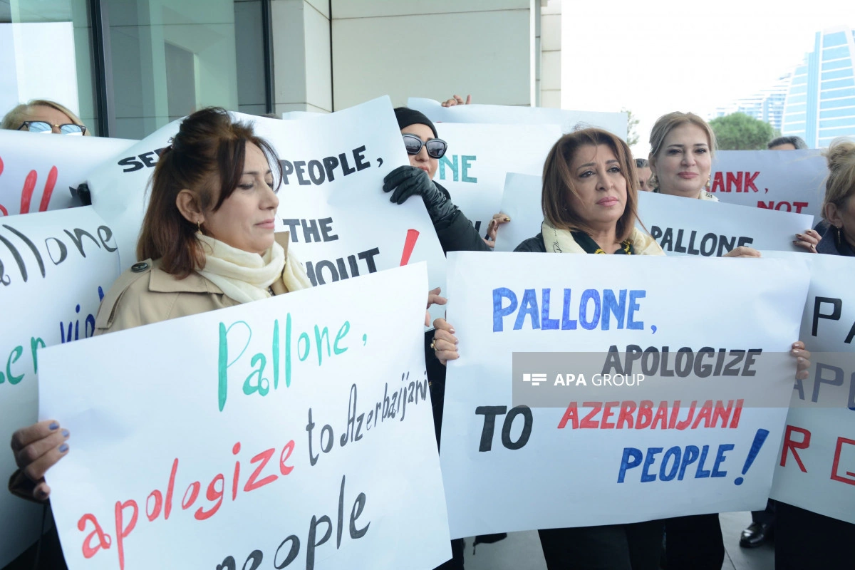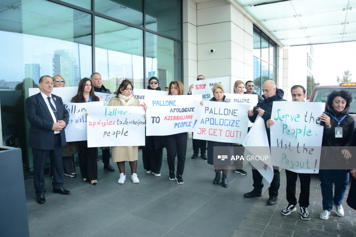 Как сообщает АПА, участники акции потребовали, чтобы Ф.Паллоне, постоянно демонстрирующий предвзятую позицию по отношению к азербайджанскому народу, немедленно извинился, скорректировал свое мнение, а также чтобы он немедленно покинул Баку.