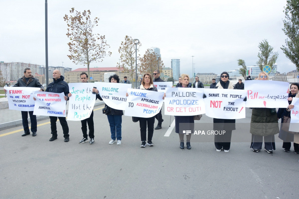 Акция протеста неправительственных организаций (НПО) Азербайджана против проармянского конгрессмена США Фрэнка Паллоне, оскорбившего азербайджанский народ, начавшаяся перед отелем, где он остановился, продолжается и сегодня.