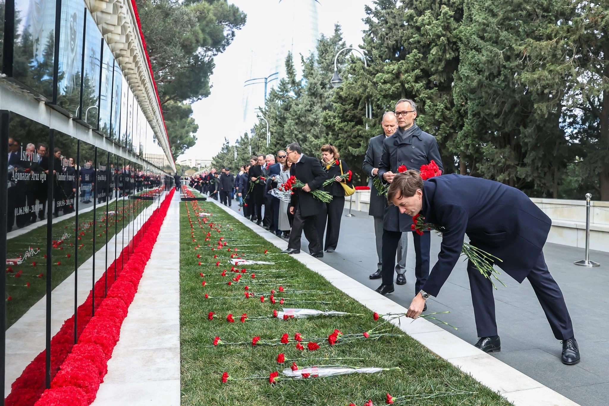 В публикации посольства Турции в Азербайджане говорится, что посол Джахит Багчи и дипломаты других стран в связи с 20 Января - Днем всенародной скорби посетили сегодня Аллею шехидов.