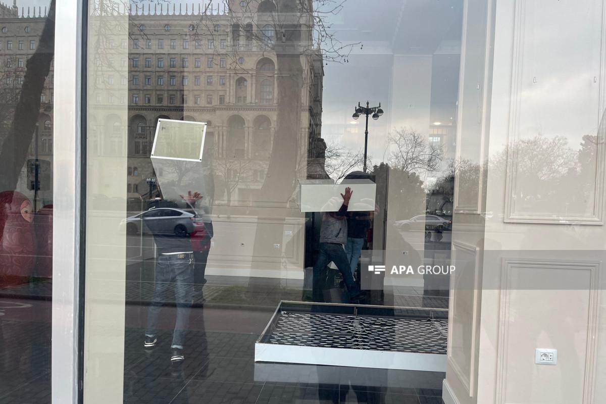 Как сообщает АПА, сотрудники "Русского дома" снимают настенные предметы, выносят вещи.