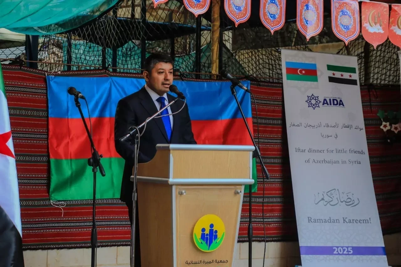 Временный поверенный в делах Азербайджана в Сирии Эльнур Шахгусейнов отметил, что на мероприятии присутствуют 500 детей, нуждающихся в заботе.