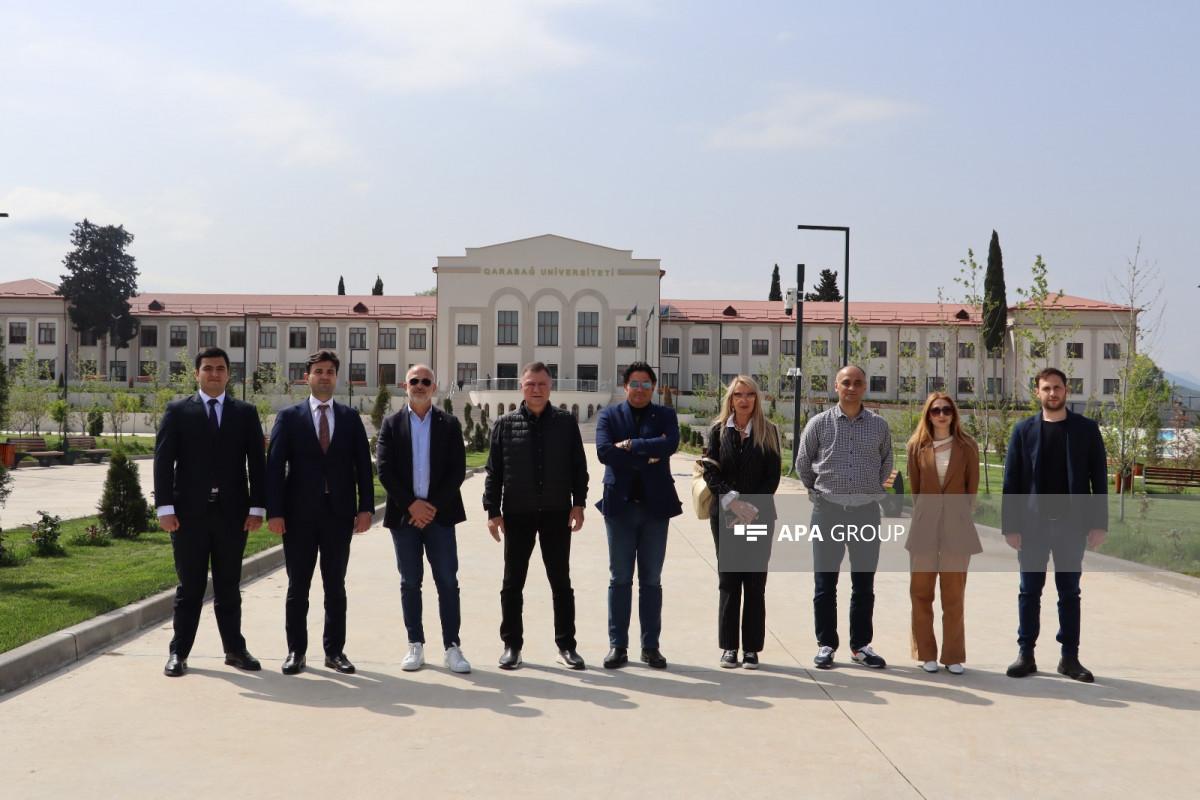 Как сообщает карабахское бюро АПА, гостей встретил специальный представитель Президента Азербайджанской Республики в городе Ханкенди, Агдеринском и Ходжалинском районах. В рамках визита гости посетили площадь Победы и ознакомились с проделанной работой. Они побывали также в Карабахском университете в Ханкенди.
