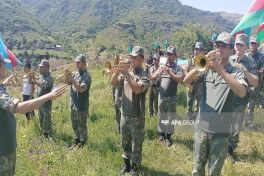 Военный оркестр исполнил государственный гимн, был открыт залповый огонь в честь шехида.