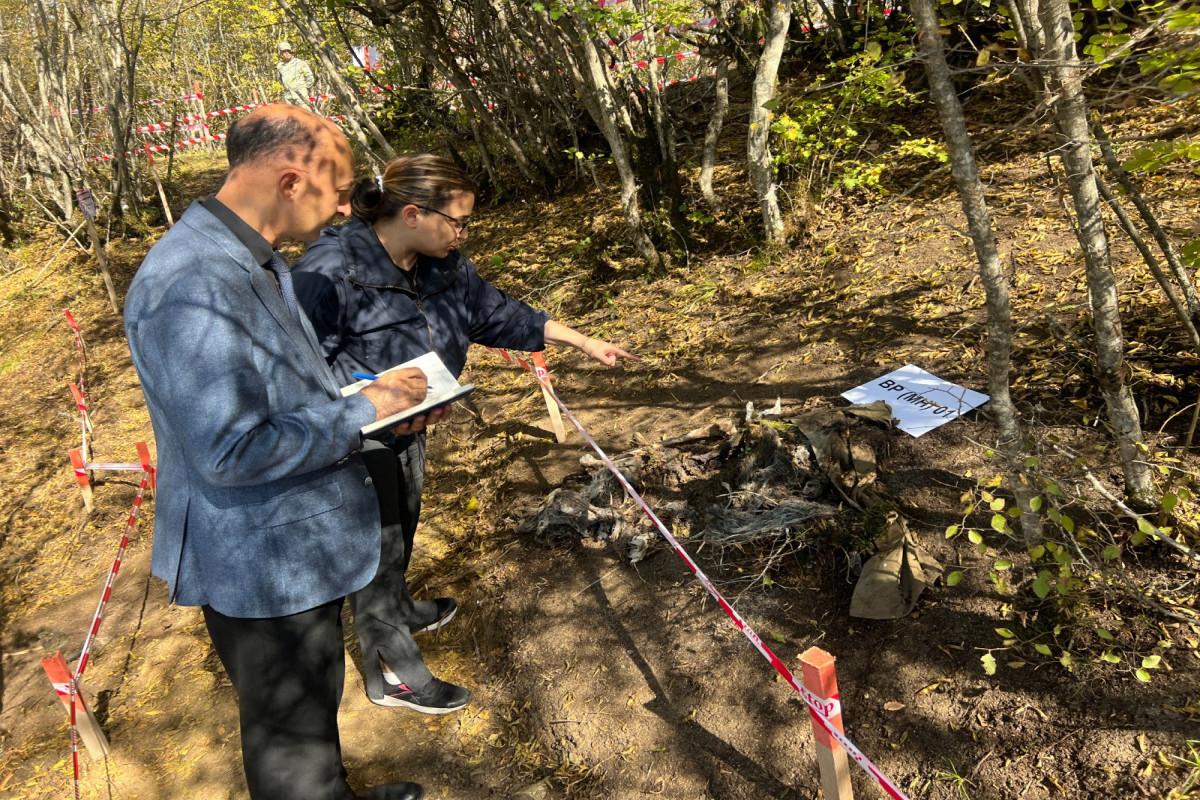 «В последние дни был выявлен ряд важных фактов. Так, на основании данных Государственной комиссии по делам военнопленных, заложников и пропавших без вести граждан, а также показаний свидетелей, на территории села Баллыгая Агдеринского района на высоте, служившей когда-то боевой позицией, в ходе поисков были обнаружены останки более 10 человек, предположительно, принадлежащих азербайджанским военнослужащим. Cогласно международному гуманитарному праву, необходимо собрать информацию о судьбе пропавших без вести лиц и обеспечить право их родственников знать правду и получить информацию. В рамках очередной миссии, сотрудники Аппарата Омбудсмена провели соответствующее расследование и собрали материалы. На основании материалов, собранных с мест массовых захоронений, Омбудсмен подготовит соответствующий отчёт по результатам мониторинга, который будет представлен общественности и международным организациям».