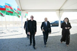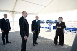 Президент Ильхам Алиев заложил фундамент солнечной электростанции «Шамс», затем принял участие в церемонии закладки фундамента солнечной электростанции «Уфуг».