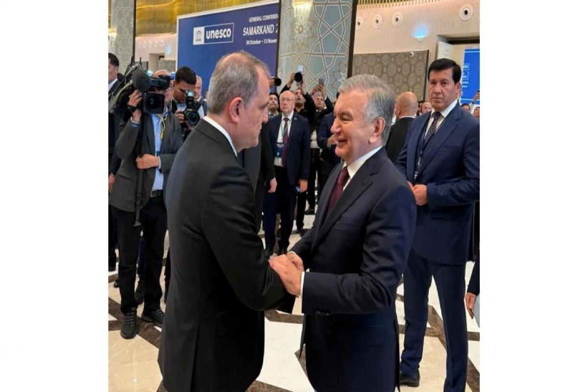 Министр иностранных дел Азербайджана Джейхун Байрамов встретился в Самарканде с президентом Узбекистана Шавкатом Мирзиёевым в рамках 43-й сессии Генеральной конференции ЮНЕСКО.