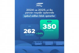ЗАО «Азербайджанские железные дороги» (АЖД) за 11 месяцев 2025 года приняло 350 блок-поездов, в том числе, 128 транзитных поездов.