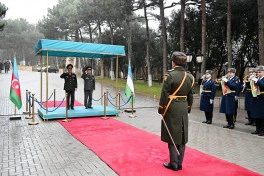 Во время официальной церемонии встречи, состоявшейся в Министерстве обороны, после прохождения перед почётным караулом, прозвучали Государственные гимны Азербайджана и Узбекистана, в соответствии с протоколом была оставлена памятная запись в «Книге почётных гостей».