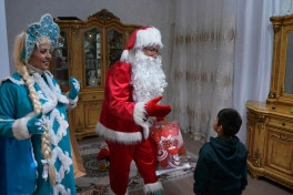 В рамках мероприятия в первом жилом квартале города была украшена елка, персонажи Дед Мороз и Снегурочка вручили детям подарки.