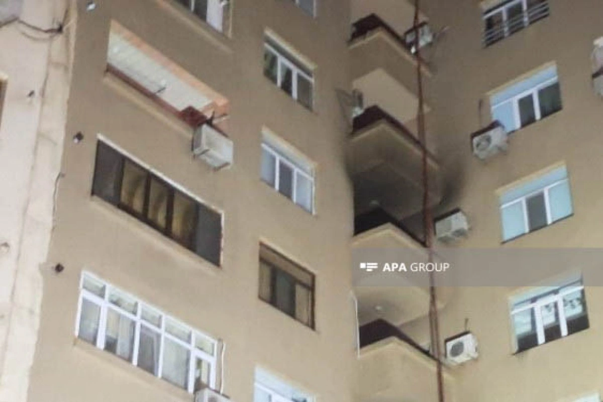 В Баку, наа проспекте Бабека в многоэтажном жилом доме произошёл пожар .