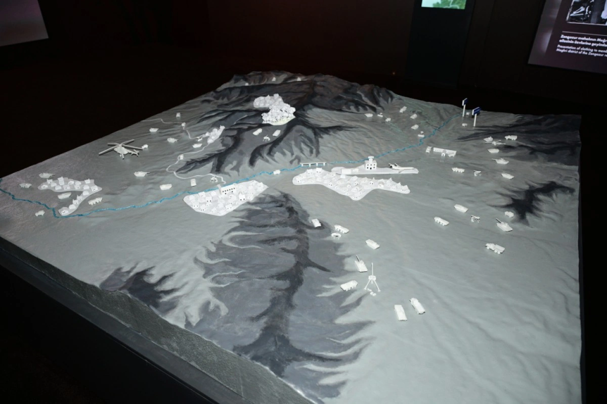 В макете Ходжалы, представленном в экспозиционном зале, информация об ужасах трагического дня подается в интерактивной форме.