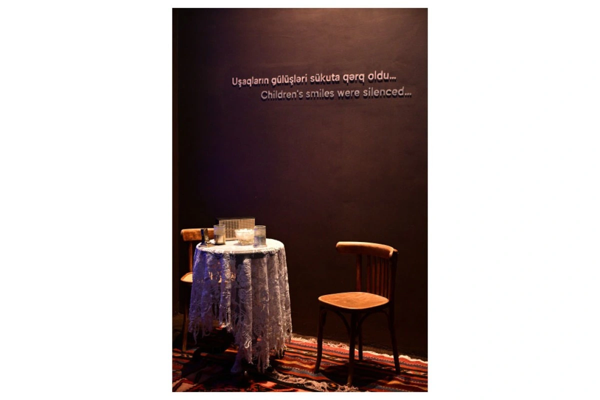 С помощью представленной во втором экспозиционном зале инсталляции Сархана Гаджиева «Дома, погрузившиеся в тишину в одну ночь», а также видеоматериалов, подготовленных с использованием искусственного интеллекта, повествуется о судьбе восьми семей, полностью уничтоженных во время трагедии, о жизнях и мечтах, оборвавшихся в одну ночь в результате преступления против человечности, о детском смехе, навсегда погрузившиеся в тишину.