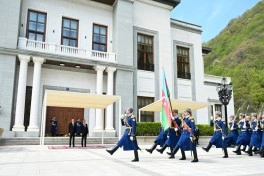 Под звуки военного марша почетный караул прошел перед Президентом Азербайджана Ильхамом Алиевым и Премьер-министром Чехии Андреем Бабишем.